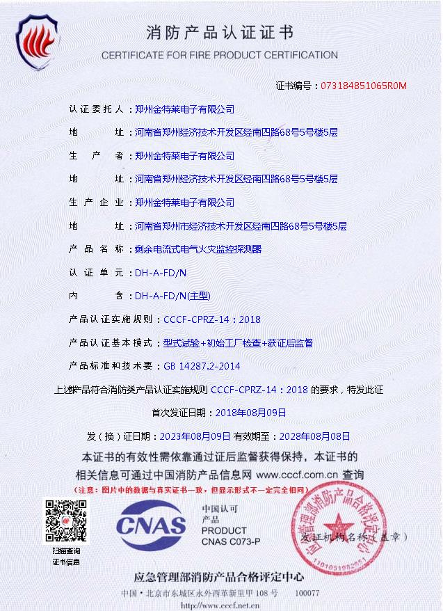 公司產品擁有自主知識產權,并通過相關部門的檢測和認證。公司研發生產DH-A型系列電氣火災監控與消防設備電源監控系統。研發出“智慧消防云平臺”“環保用電監控系統”“智慧用電”“智慧斷路器”等智能系統。