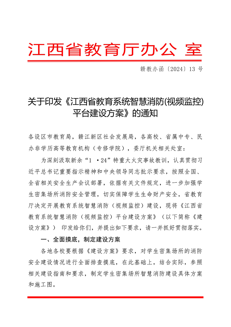 在新余“1·24”特重大火災事故的深刻教訓之后,江西省教育系統正迅速行動,以科技為支撐,全面提升學生密集場所的消防安全管理水平。江西省教育廳近日印發《江西省教育系統智慧消防(視頻監控)平臺建設方案》(以下簡稱《建設方案》),標志著全省范圍內的智慧消防建設正式啟動。